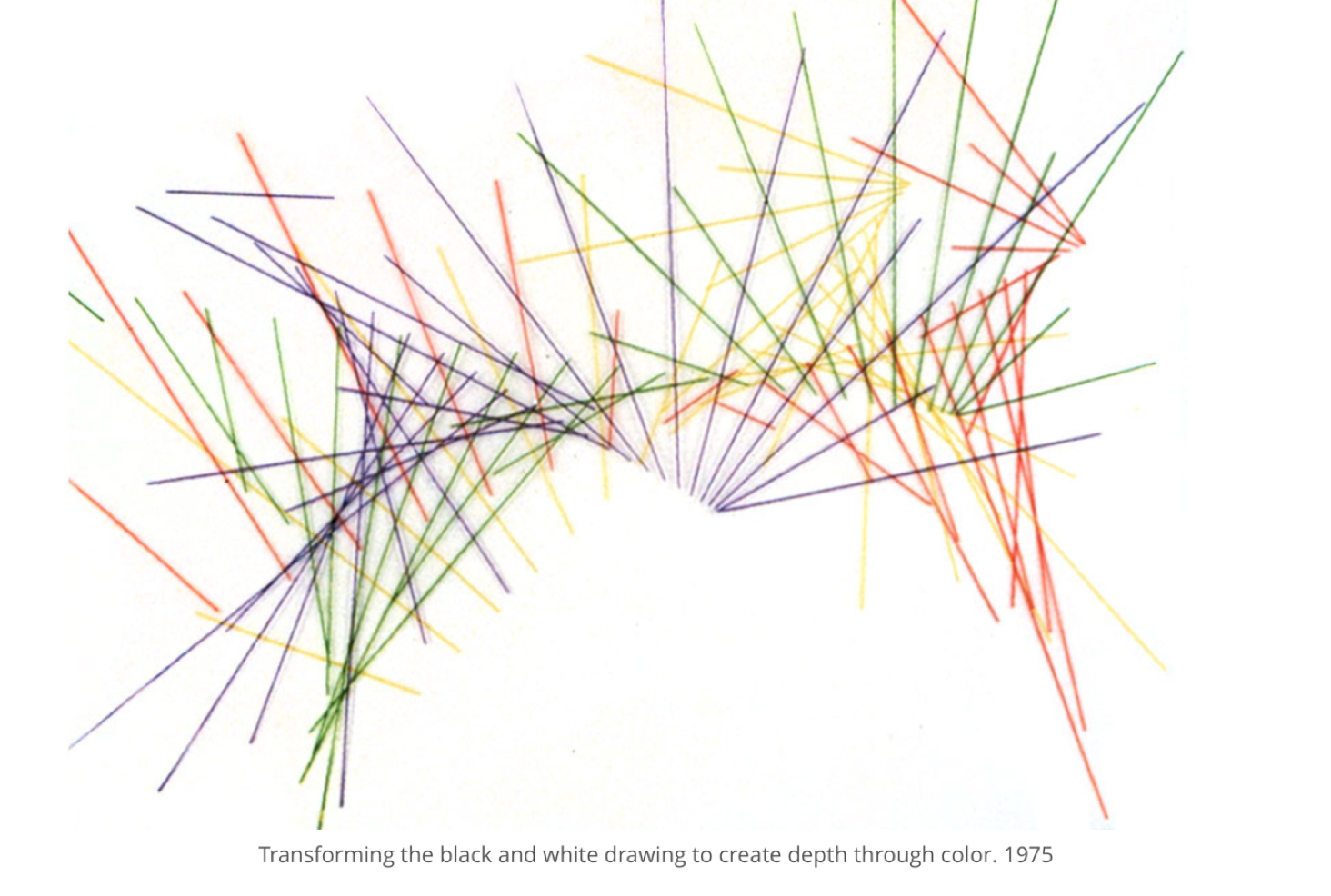The influence of Mohr is clearly seen in the works of Joan Truckenbrod. She also created line drawings by developing computer programs in FORTRAN. Truckenbrod incorporated mathematical formulas that described natural phenomena to develop her visual compositions. She then introduced color to create layered, dimensional 2D drawings. Truckenbrod created one of the first courses in the computer graphics field that combined visual imaging with sound and motion. This resulted in the publication of her book, Creative Computer Imaging, Prentice Hall, 1988.