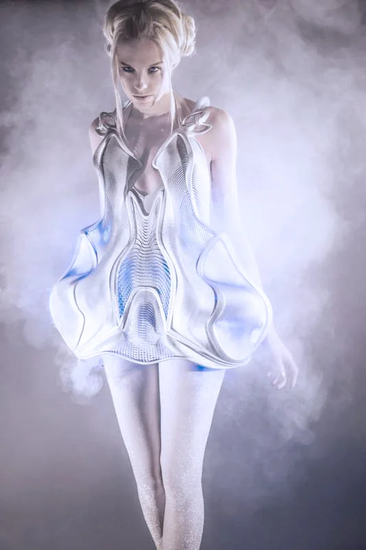 Anouk Wippecht is a hi-tech fashion designer from the Netherlands who specializes in engineering and user experience design for what she calls technological couture. Her designs function as a type of artificial intelligence or ambient intelligence that responds to its environment. She is a firm believer that what fashion is lacking is micro controllers and sensors. Wippecht forcasts the future of fashion as technology becomes more and more embedded in the things around us.