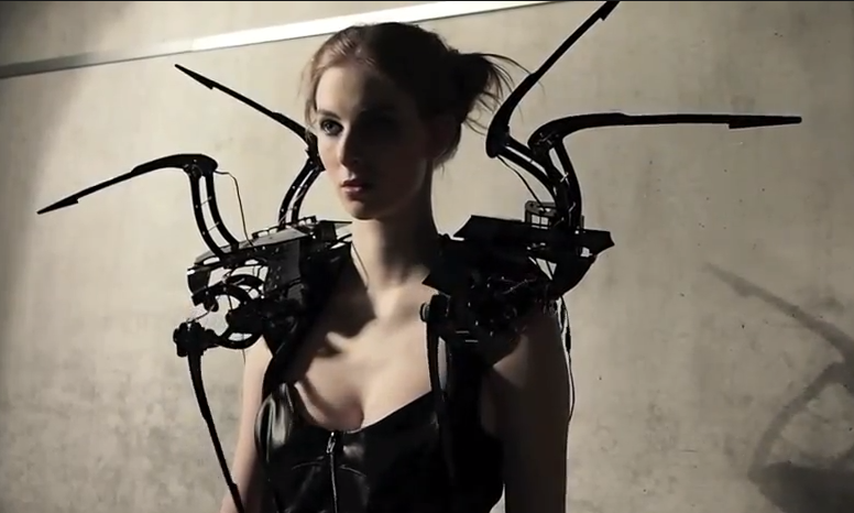 "It’s a violent thing of beauty, at once mesmerizing, provocative and intimidating. The legs constantly move, reacting to real-time biometrics based on pre-programmed social norms and violations...The legs are driven by computer and sensor technologies that allow it to be autonomous, but assistive and adaptive to the owner’s emotions and desires...Using wireless biometric signals, the system makes inferences based on the stress levels in your body. It can differentiate between 12 states of behavior." Kaplan, Ken (6 Jan. 2015) Robotic Spider Dress Powered by Intel Smart Wearable Technology